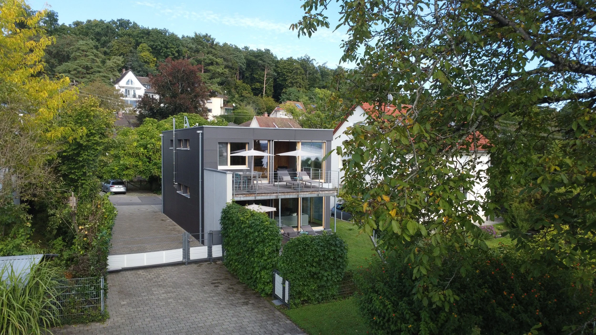 Großzügiger, offener Wohnraum – Platz zum Kochen, Essen & Geniessen. Zugang zur Terrasse mit Garten & Blick über den See und gerne auch Raum für den liebsten Vierbeiner.